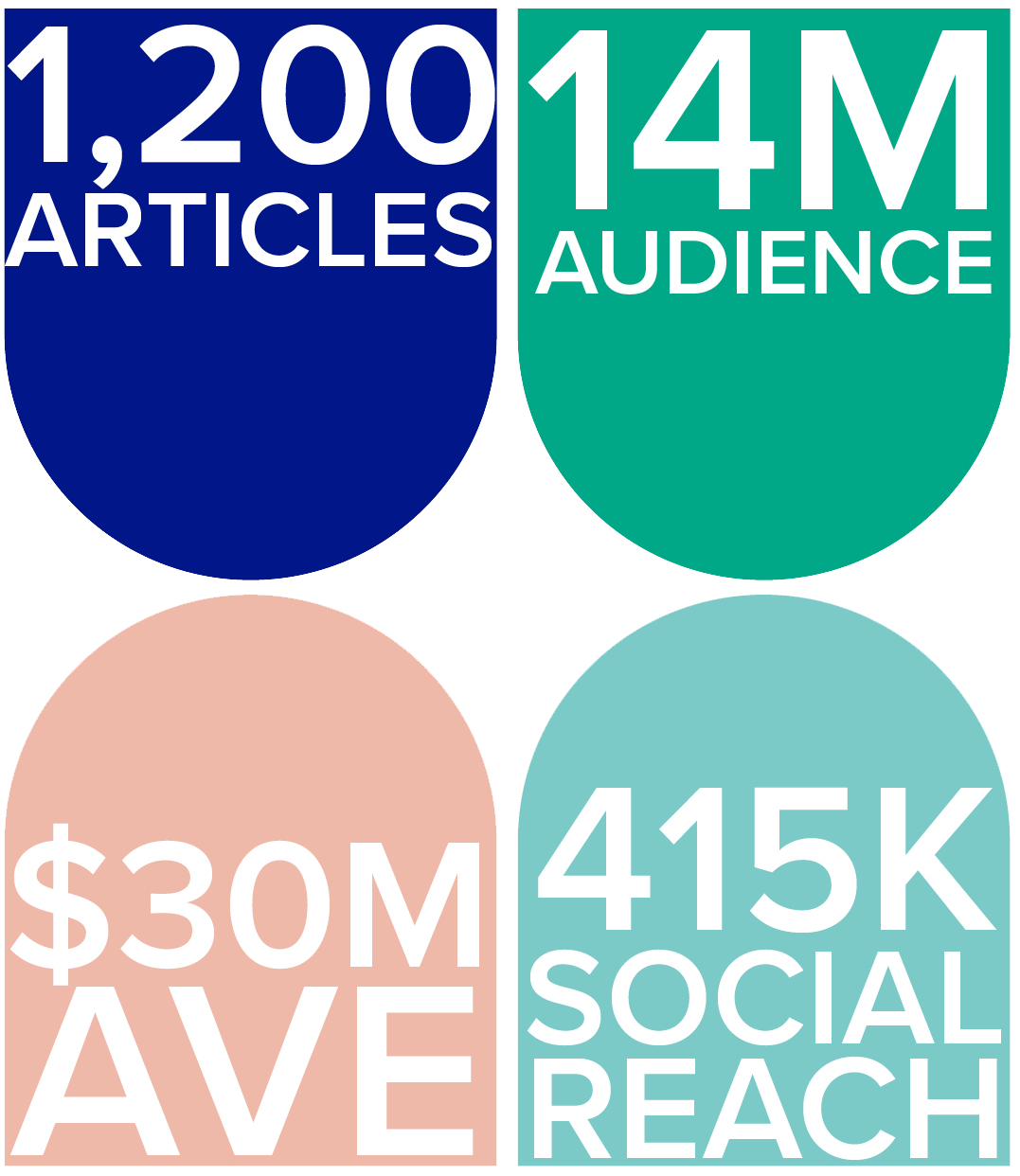 From February 2020 to February 2021 alone, she was featured in more than 1,200 media articles, reaching audiences across print, radio, and television — ABC, BBC World Service, SBS, Channel 9, Channel 10 The Project, German television, French television, Channel News Asia — with an estimated audience reach of more than 14 million people and an advertising value equivalency of approximately $30 million.
